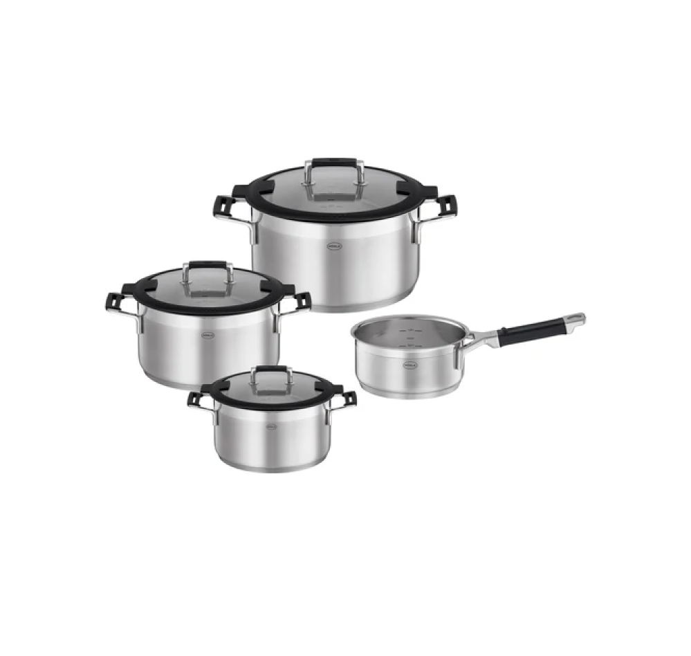 تم تصميم مجموعة الأواني بأناقة بسيطة ومجهزة بخصائص ذكية، وتوفر الراحة الكاملة وكل ما تحتاجه أواني الطبخ الحديثة في الوقت الحاضر. وهذا يجعل الطبخ ممتعًا ويتم استحضار الأطباق الشهية المغرية على الطاولة بسهولة.